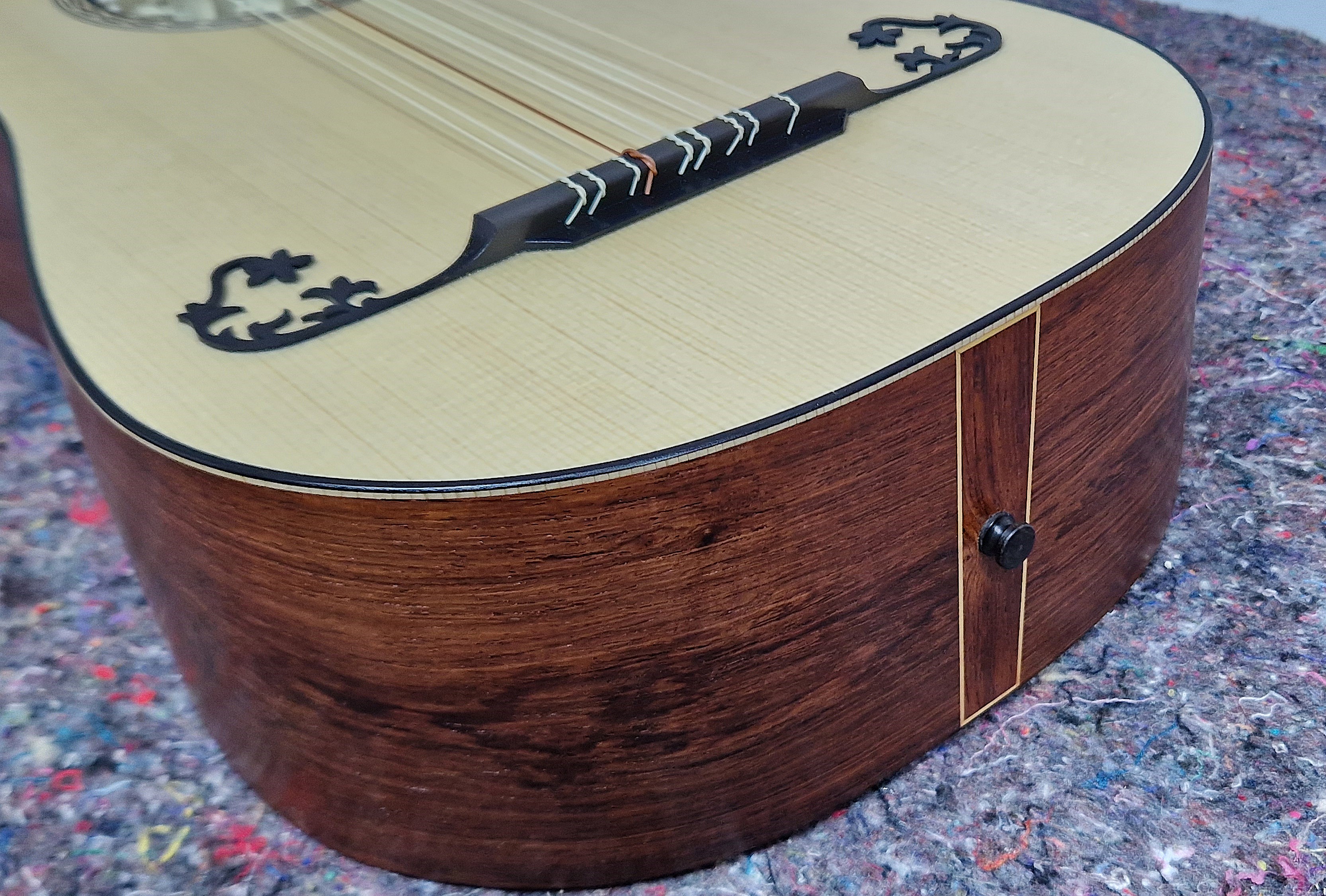 body in curly or birds-eye maple, rosewood or according to individual customer preferences with or without purfling