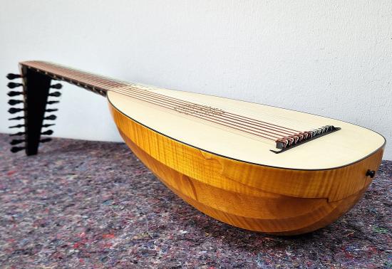 body with 11 ribs in curly or flecked maple, yew, indian rosewood, plum or according to individual customer preferences