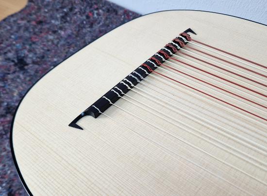 spruce soundboard with 2 discant a bass bar and