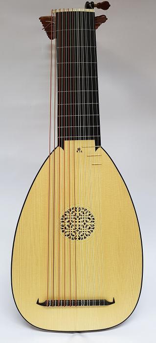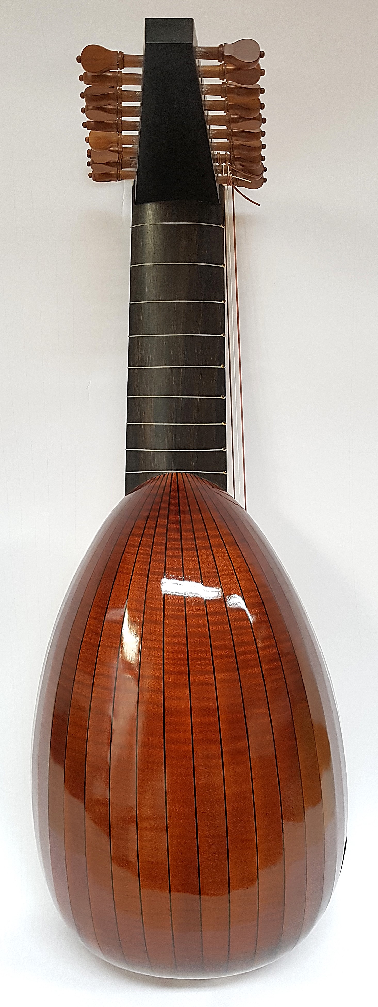 body with 19 ribs in fir wood, curly or birds-eye maple, plum, yew, indian rosewood or according to individual customer preferences with or without purfling