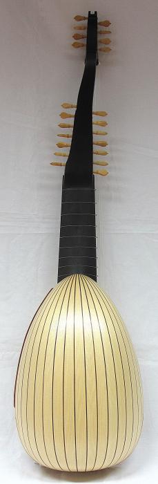 body with 19 ribs in fir wood, curly or birds-eye maple, plum, yew, indian rosewood or according to individual customer preferences with or without purfling
