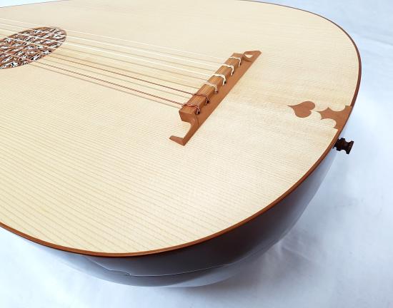 body with 9 ribs in birdseye-curly maple, indian rosewood, padouk, plum, yew or according to individual customer preferences