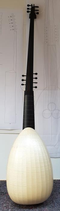 body with 15 (or 27 ribs) in curly or birds-eye maple, indian rosewood, plum, yew, ebony or according to individual customer preferences