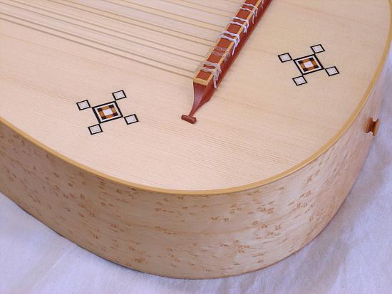 body in curly or birds-eye maple, rosewood, plum, walnut, cherry, pearwood or according to individual customer preferences